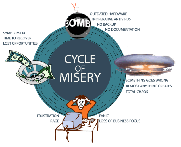 The amazing part of computing technology is not that it breaks, but that it continues to work with so much neglect. But inevitably, something will happen; and when it does, you realize right away that your technology was the cardiovascular system of your business and this problem is creating total chaos.